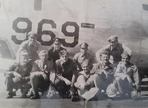 HEAVY BOMBER, CALLED "969". (STANDING LEFT REAR, WITH HIS CREW, IN